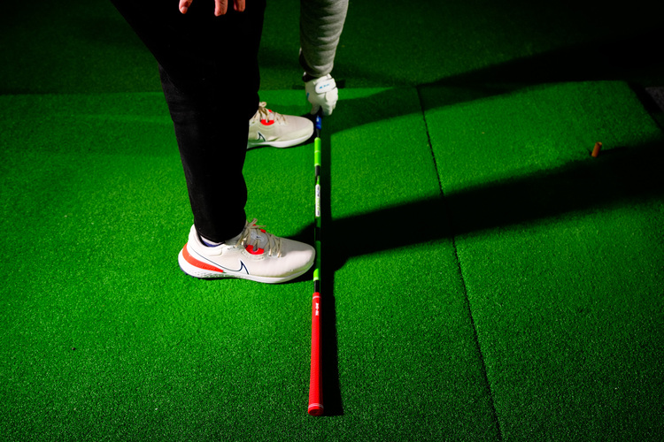 赤いグリップ側を持つと重さを感じながらゆったりと素振りをすることができ、体幹が鍛えられスイングの安定性向上に効果的です。