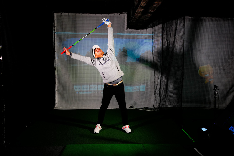 また、青いグリップ側を持つとカウンターバランス効果でスイングスピードを上げる素振りが可能になります。