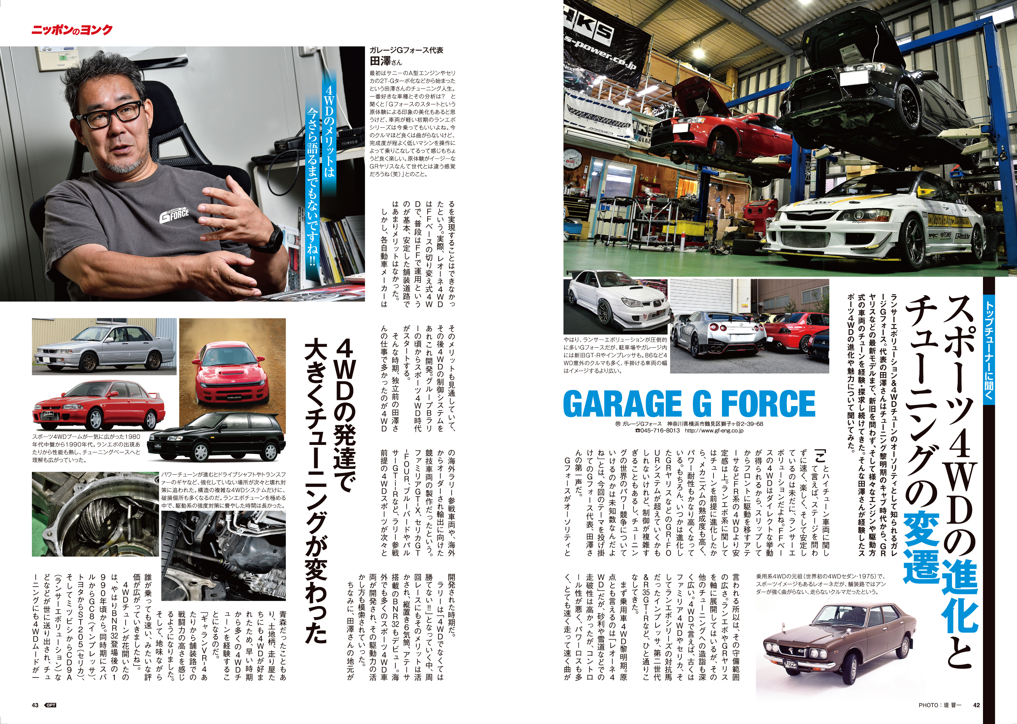 まず、巻頭では『ニッポンのヨンク』と題したスポーツ4WD特集を展開。80年代にスポーツモデルのエンジンがターボ武装してパワーを得ると、安定したトラクション性能を発揮させるべく4WDの開発が激化。そして、コンピューターが最適なトルク配分を行なう電子制御化が進み、日本が世界に誇る、多くのスポーツ4WDモデルが誕生したわけだ。そんなスポーツ4WDの歴史を辿ると共に、チューニングシーンにおける最新情報と、その愛好家の生態に迫る。