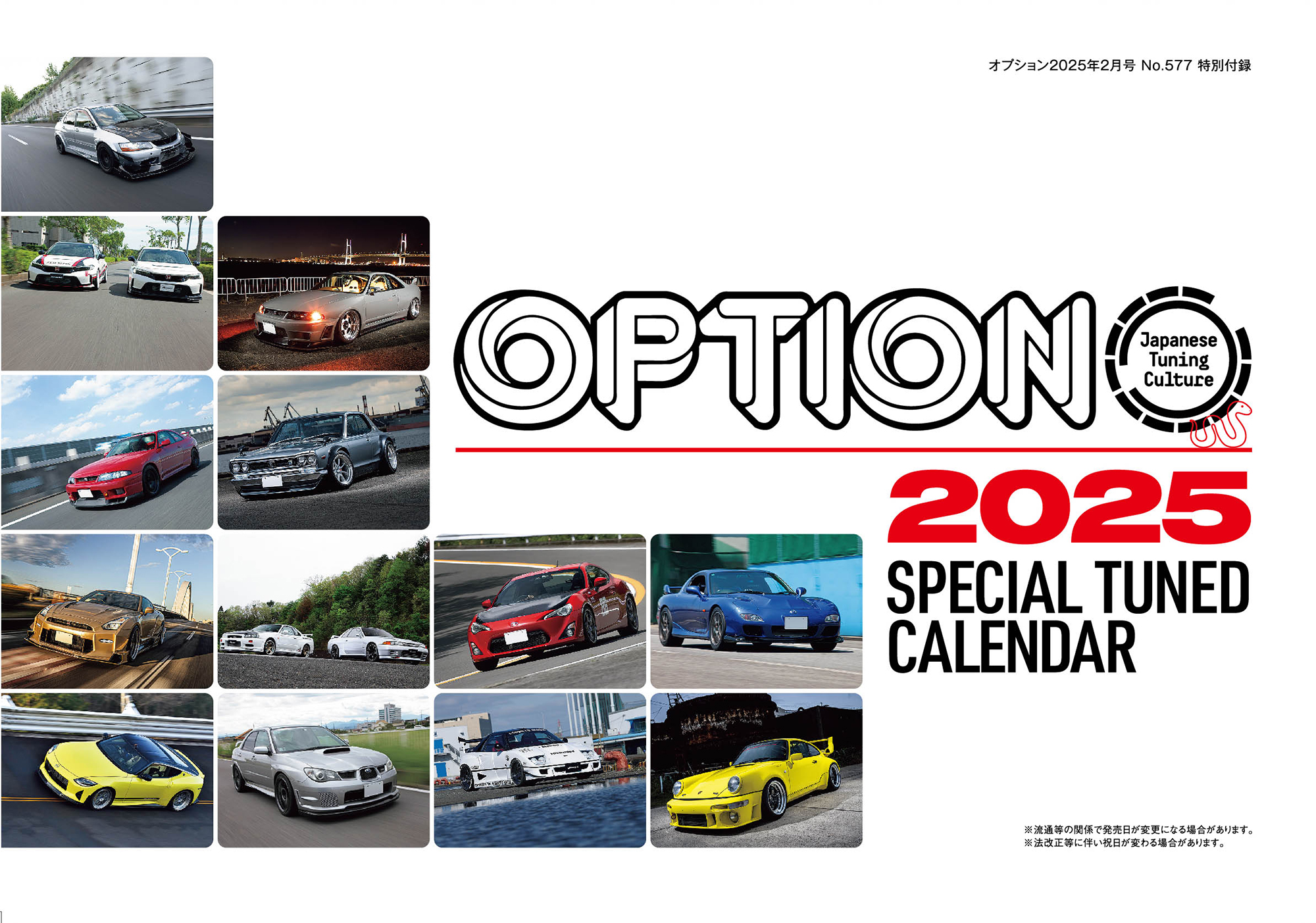 そして、オプション2月号には「SPECIAL TUNED CALENDAR」が付いてくる! カッコいいチューニングカーのポスター要素で君の部屋を飾れるのはもちろん、見開きに1ヵ月だけを掲載する大型カレンダー仕様で、予定がぎっしりと書き込めるから実用性も抜群。