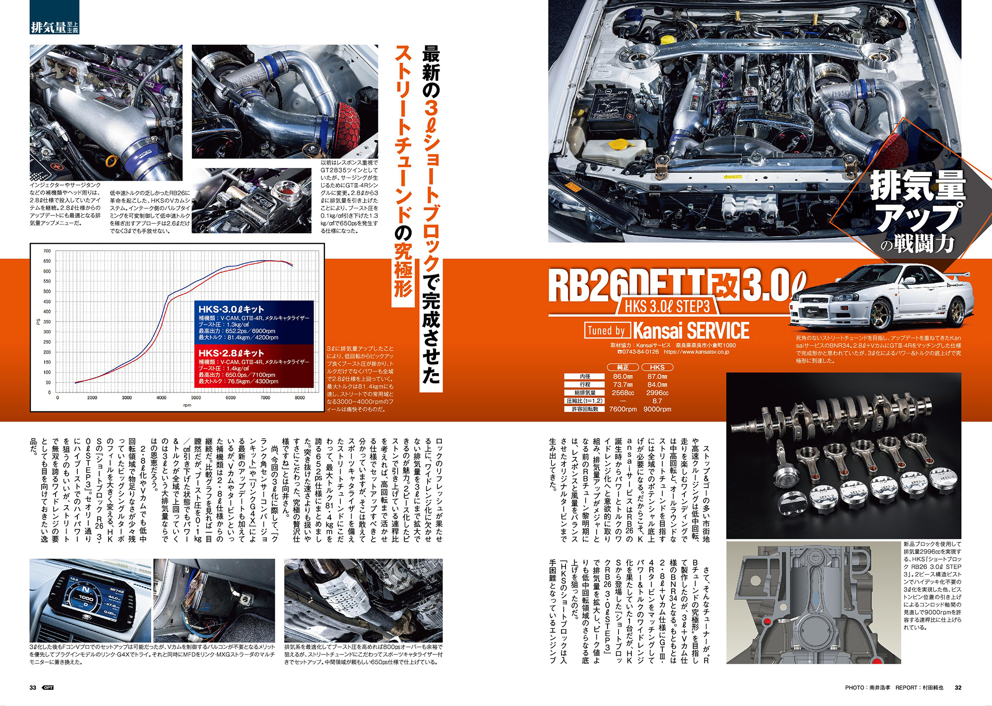 オプション2月号の巻頭特集は「時代に逆行するチューニングトレンド」をキャッチコピーに、大排気量をテーマに展開。ダウンサイジングターボコンセプトが世界的なトレンドとなっている現在だが、パワーと速さを楽しみたい生粋の走り屋だったら、「排気量は大きいに限る!」と思っているはず。そこで、大排気量車のさらなるパワーアップや排気量アップなど、チューンドならではの楽しみを追求する内容となっている。