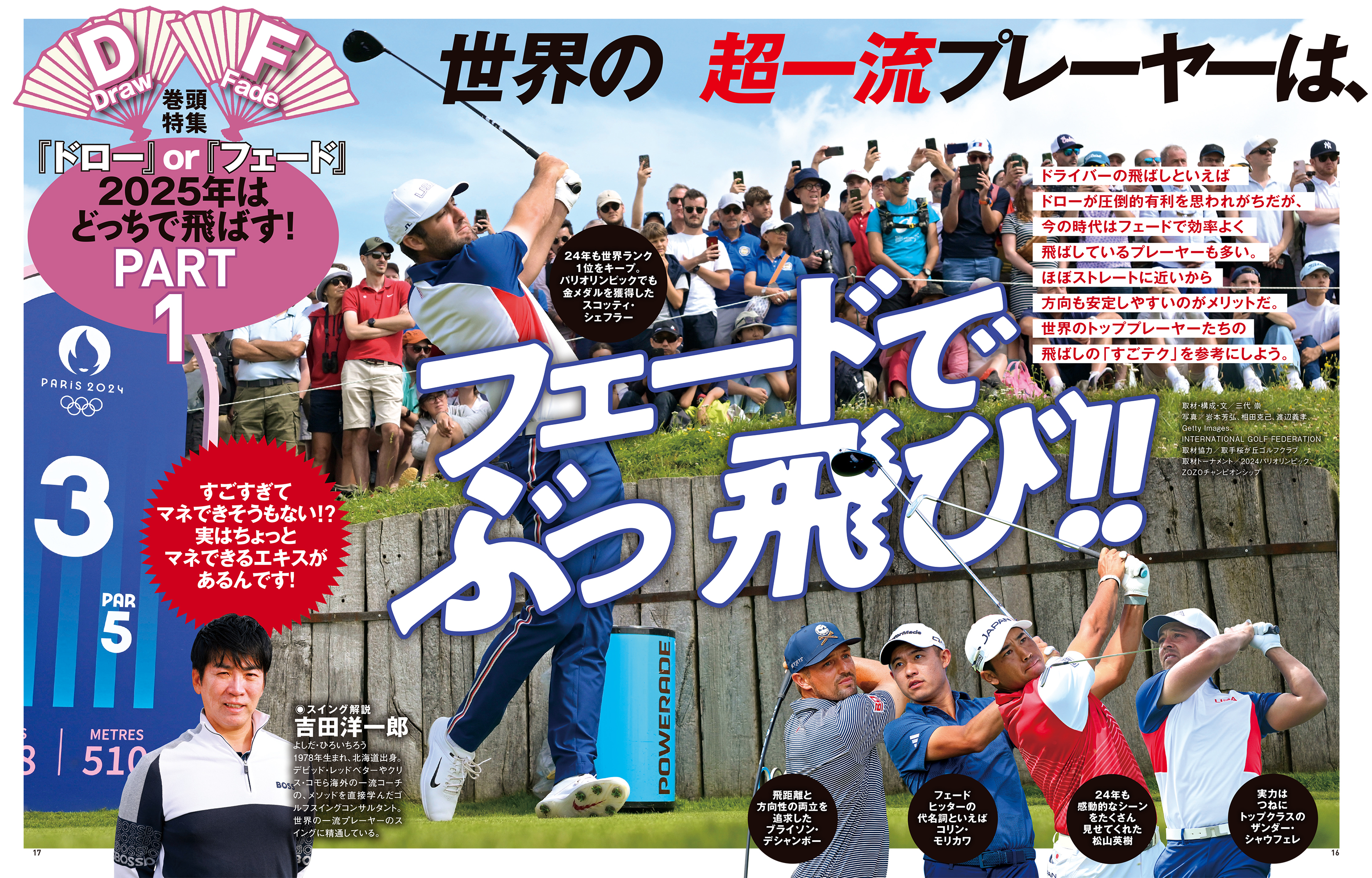 14 巻頭特集 「ドロー」or「フェード」2025年はどっちで飛ばす!? Part1 世界の超一流プレーヤーは、フェードでぶっ飛び!!