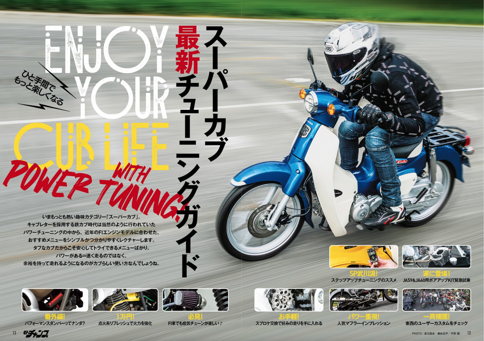 いまもっとも熱い趣味カテゴリー「スーパーカブ」。 キャブレターを採用する鉄カブ時代は当然のように行われていた パワーチューニングの中から、近年のFIエンジンモデルに合わせた、 おすすめメニューをシンプルかつ分かりやすくレクチャーします。タフなカブだからこそ安心してトライできるメニューばかり!