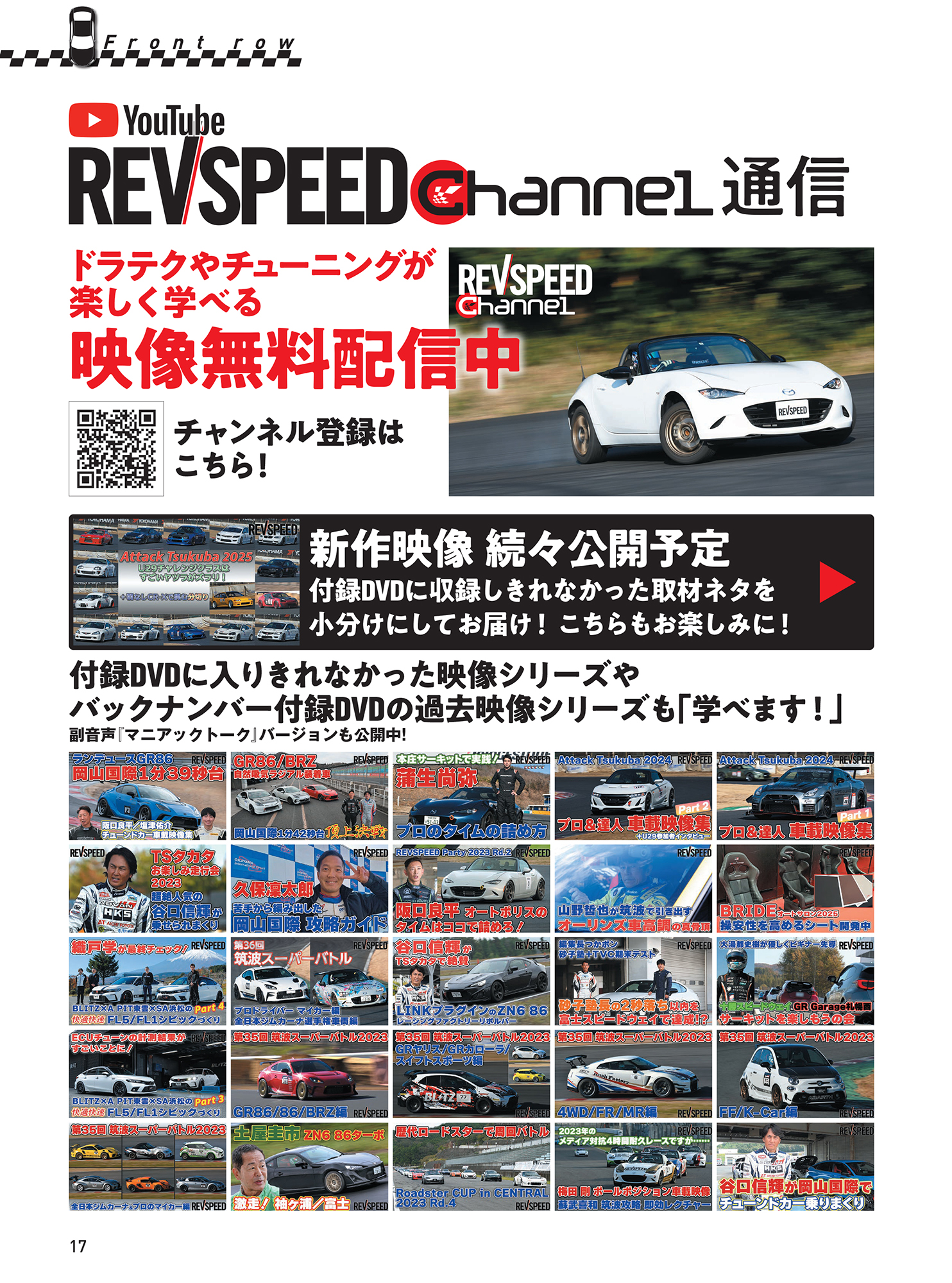 誌面特集は『スイフトスポーツチューニング最前線』です。スーパー耐久レース車両、カスタマー車両、やり過ぎの領域まで行き着いた各社のタイムアタック車両などから、いまオススメのほどよい推奨パッケージを導き出しています。『ブレーキ アップデート提案』はブレーキメーカー各社の最新パーツをレビュー&テスト。「確かなもの選び」の「確かなヒント」をお届けしています。付録DVDは岡山国際サーキット、富士スピードウェイ、筑波サーキットで取材のドラテク企画3本とタイムアタック車両ARVOU S2000、ブレーキ、サスペンションに関するチューニング&セッティング企画3本です。副音声はお馴染み『木下みつひろマニアック解説』。