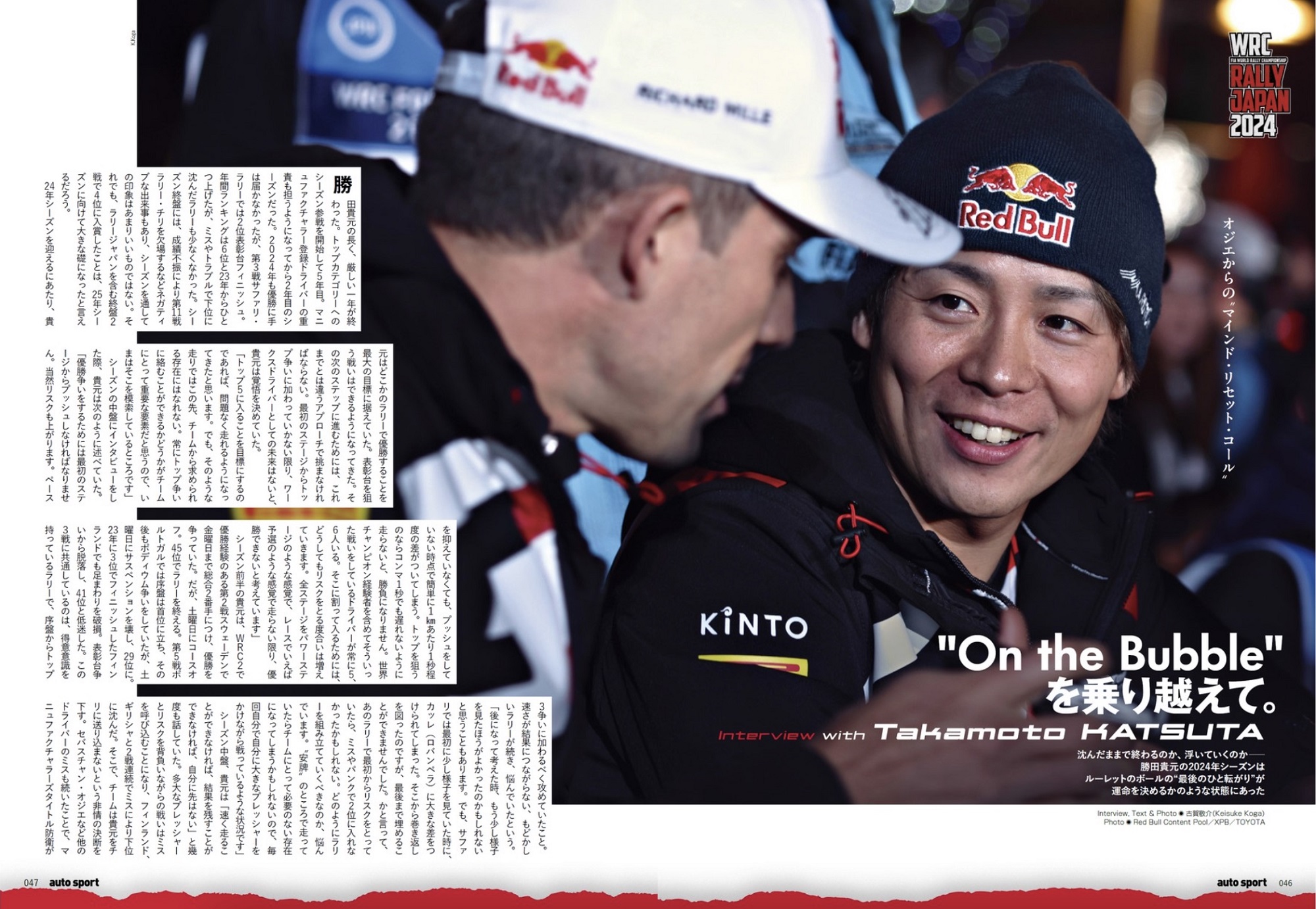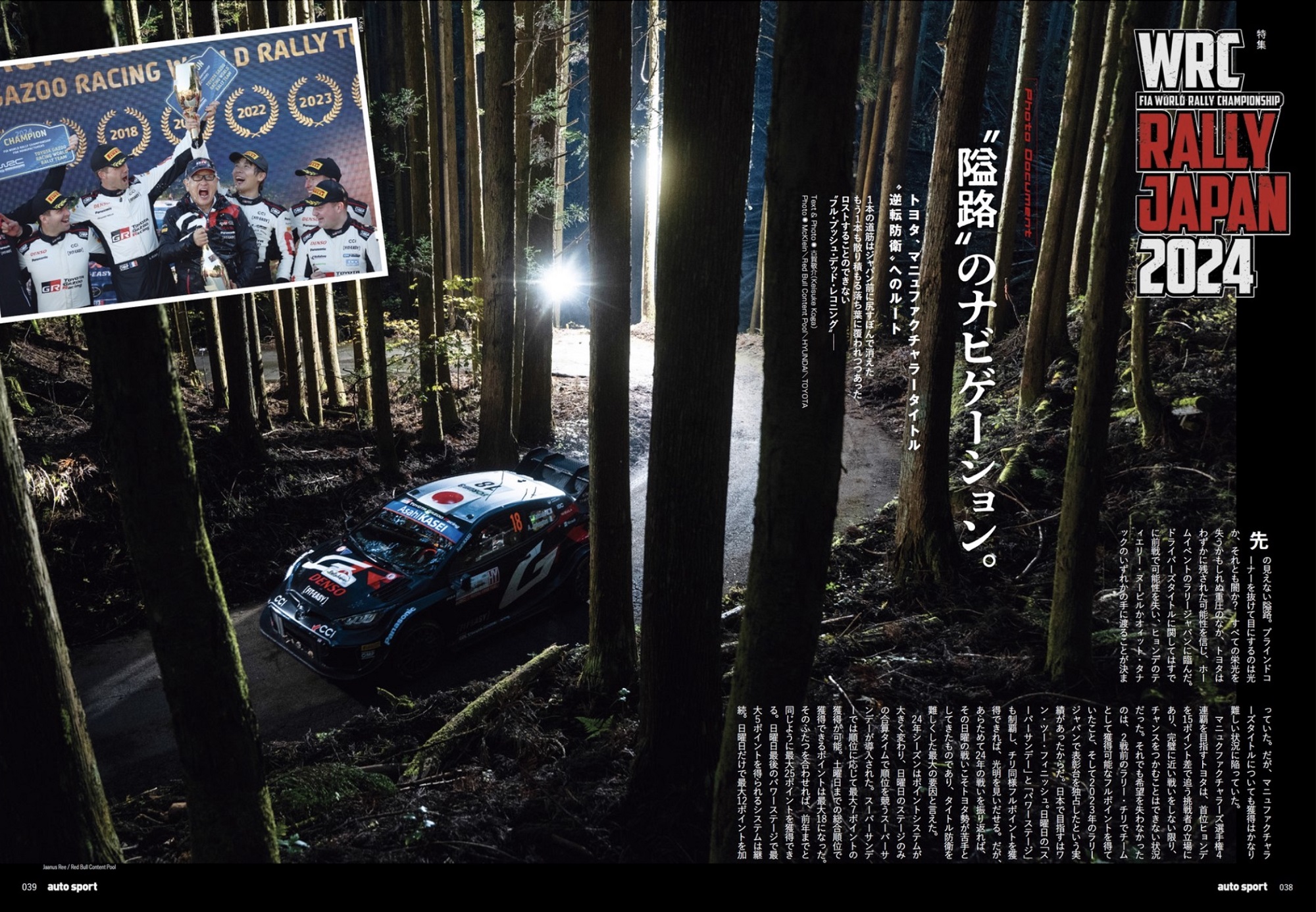 オートスポーツNo.1604の大特集は「WRC」です。ドライバーズ・マニュファクチャラーズ双方のチャンピオン決定の舞台となったラリージャパンを総力取材し制作しました。GRトヨタが逆転でヒョンデを下して王者となった週末のラリーレポートはもちろん、「無冠の帝王」を返上し初戴冠となったティエリー・ヌービル・ストーリー、地元で躍動した勝田貴元/新井大輝のインタビューなど20ページ以上のボリュームを割いて「世紀の一戦」を詳報しています。
