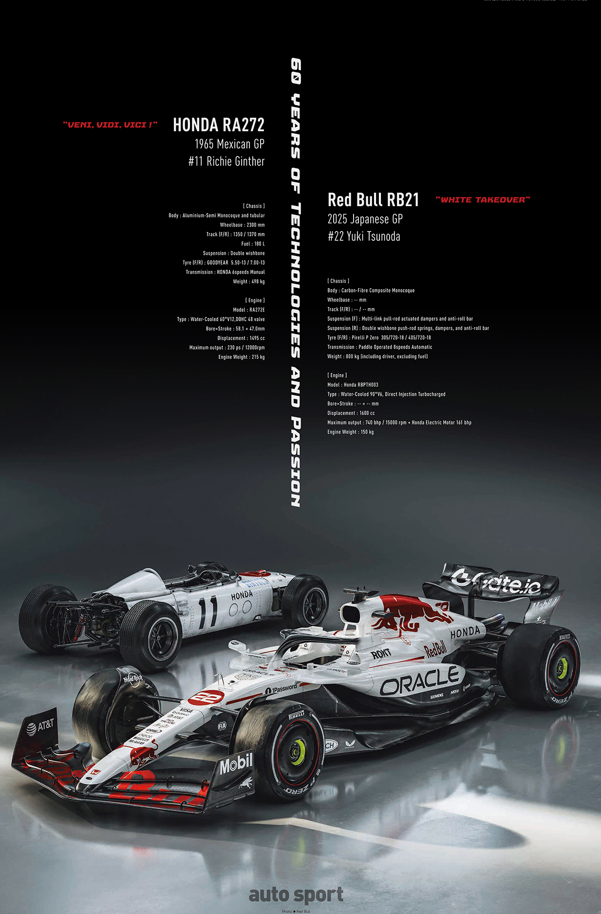 『オートスポーツ』No.1608は「緊急特集」として日本人唯一の現役F1ドライバーである角田裕毅の大特集です。鈴鹿での日本グランプリ直前に「レッドブル」へ昇格移籍することが決まり、一躍その一挙手一投足が世界中から注目を集めることとなりました。今号は特集に合わせ、鈴鹿での角田選手の走行シーンとホンダF1活動60周年の歴史が感じられるメモリアルな両面式の大判ポスターが付録としてついています。