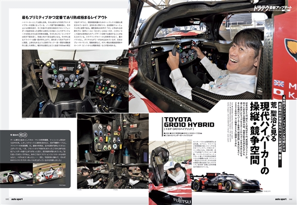 特集外では話題のGT500ニューマシン、ホンダ・プレリュード-GTのシェイクダウンテストに密着、外観から読み取れる現状の戦力分析を巻頭記事として行ないました。もちろんWEC富士の、苦境に立たされたトヨタ視点でのレースレポートや学生フォーミュラ日本大会のレビュー、スーパーGT第6戦SUGOの詳報も掲載しています。