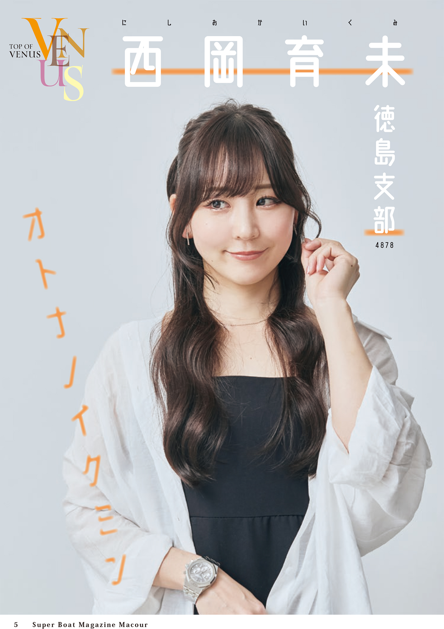 徳島支部の西岡育未が登場。“いくみん”の愛称で知られるかわいくて人気の高いレーサーだが、デビューして9年、オトナのいくみんをご堪能あれ!