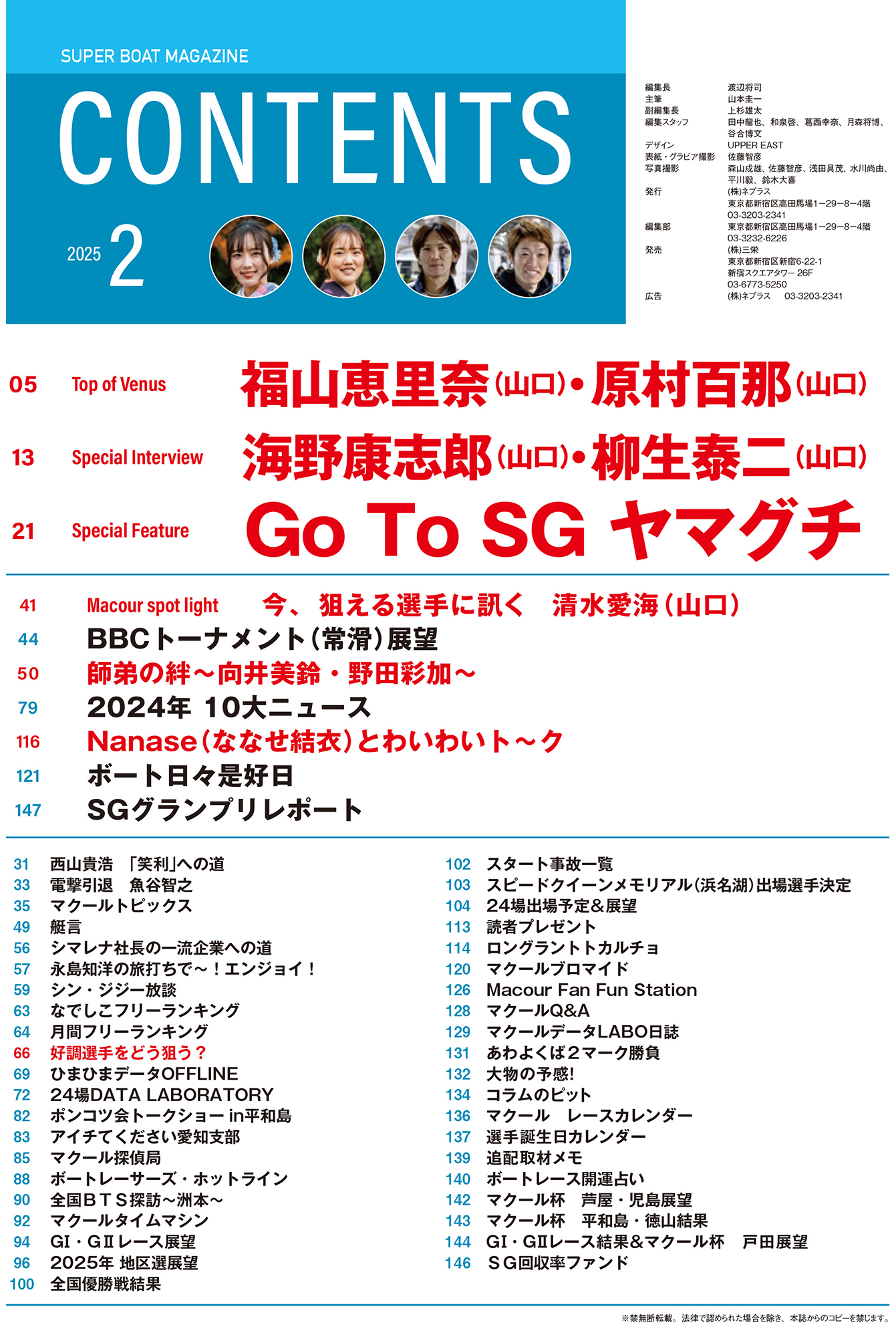 12月号で展開した山口支部応援プロジェクト。11月には早速、下関のチャレンジカップで寺田祥が準優勝と奮戦、そして新期はA級選手も増えて意気が上がる。新たな年2025年、さらにその先へとSGへ進出する選手が増えてくれればいっそう盛り上がること間違いなし!!