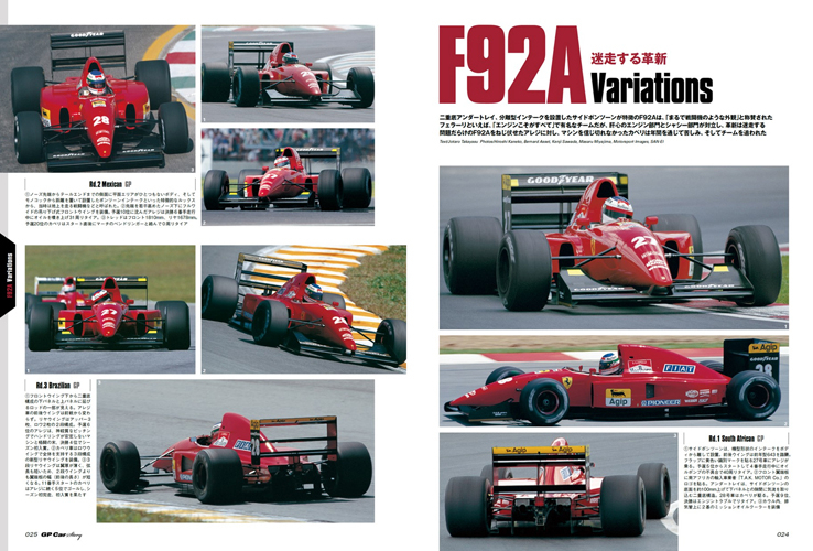 今回もF92Aが戦った1992年全16戦をカバーしてお届け。「ホンモノの目」を持つ高安丈太郎氏の解説で「こんなの知らなかったぞ」という発見があるはず! 同じく人気企画、マシン細部を探る「F92A Detail File」もお見逃しなく