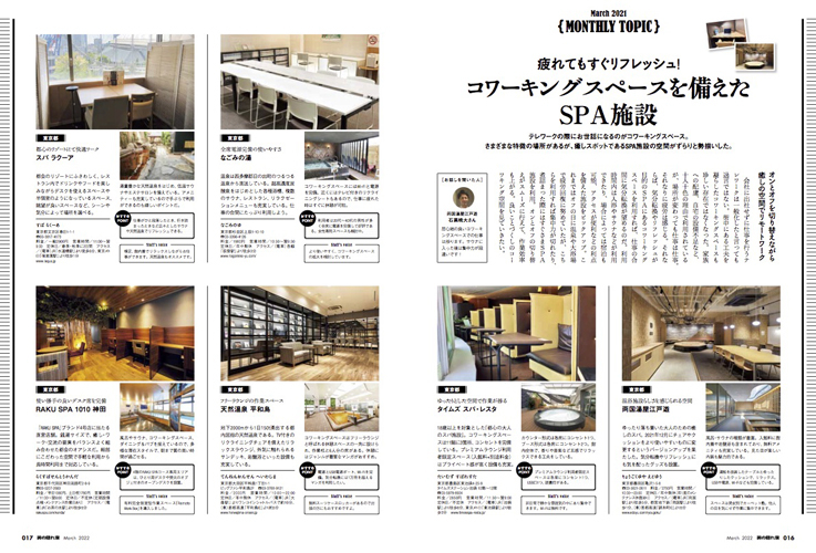 マンスリートピックスでは、リモートワークでの仕事をはかどらせるコワーキングスペースを備えたSPA施設をご紹介。