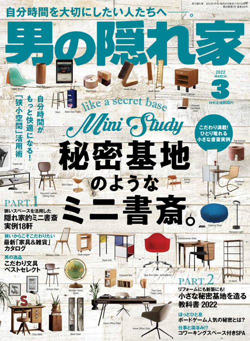 「小さな秘密基地」特集で恒例の家具・雑貨カタログを本号も登場。今回も小さな秘密基地にぴったりの机、椅子、収納、雑貨をセレクトした。