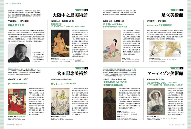 第四特集では、さらに注目の展覧会をご紹介。全国各地から様々なジャンルの美術展を網羅しており、一冊の中に70の美術展情報が収められている。