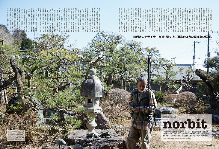 今月のブランドピックアップは、NY発信で脚光を浴び、ものスゴく刺さるアイテムを次々に展開する「norbit(ノービット)」。腕利きのデザイナーが辿り着いた“道具のような媚びない洋服”、そして誰もが頼るトップクリエイターの人里離れた生活に迫りました。