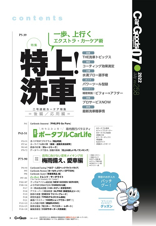 前号の基本編に続き、今号は応用編の体裁にてカーケア特集を集中特集。