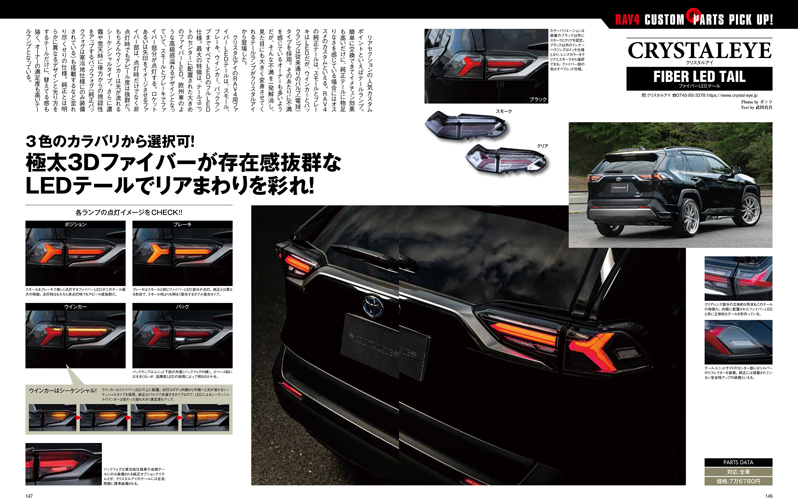 さらに総数500点以上のカスタムパーツカタログなど、RAV4乗り必携の一冊です。