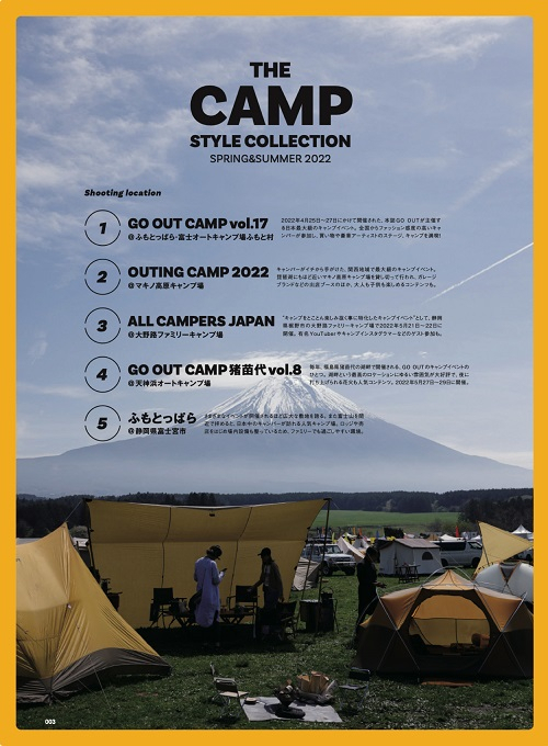GO OUT別冊の人気シリーズ、「CAMP STYLE BOOK vol.18」が6月21日(火)に発売となります。“ゆるくておしゃれな、キャンプスタイルサンプル。2022春夏”ということで、ソロやファミリー、グルキャンまで、60組のおしゃれキャンパーたちのテントサイトをシューティングしてきました。