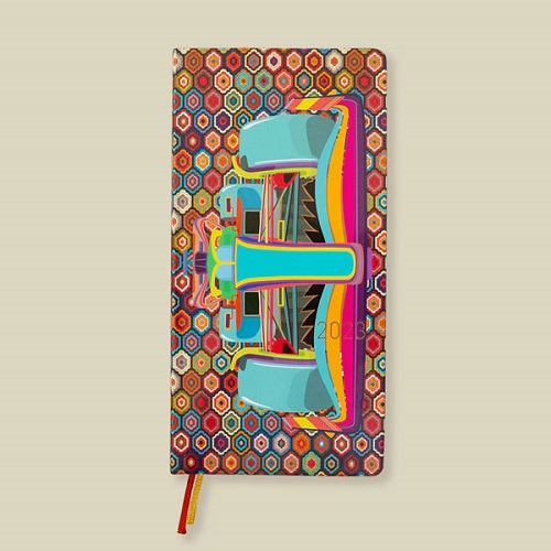 イラストが引き立つ光沢感のある素材での表紙は、ほっこりとした模様の上に鮮やかなマシンがデザインされ、F1好きをさりげなくアピールできます。赤旗・黄旗を思わせる2色の栞もポイントです。