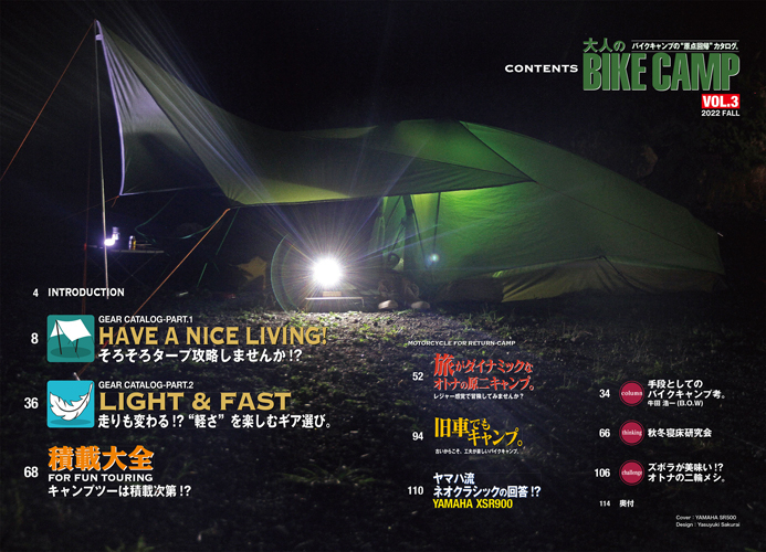 - バイクキャンプの“原点回帰”カタログ。