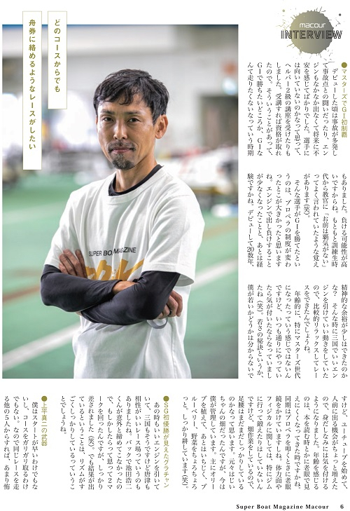 今年の三国マスターズチャンピオンで“名人”となり、唐津グラチャンでは一度は先頭に立ちながら準優勝。今年の上半期を沸かせたひとり。ボートレーサーYouTuberの先駆けとして話題になった上平真二の今に迫る。