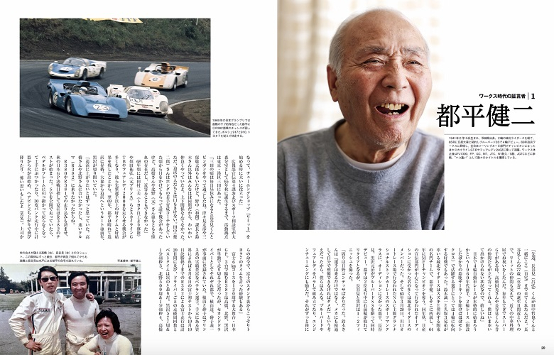 1960~70年代のプリンスおよび日産ワークスの輝かしい活動と高い技術力、属した若き名ドライバーたちの群像を特集しています。ビッグマシンと呼ばれトヨタやポルシェと争った日産R380~R382とその直後に花開いた「ツーリングカーレース50勝」のハコスカGT-Rを合わせて同格に取り上げています。都平健二さんや星野一義さん、北野元さん、長谷見昌弘さんへのインタビューのほか黒沢元治さんには故・桜井眞一郎エンジニアとの共闘を振り返ってもらっています。表紙は今年亡くなった高橋国光さんのハコスカGT-Rの15号車で、あらためて国さんに捧げる一冊でもあります。