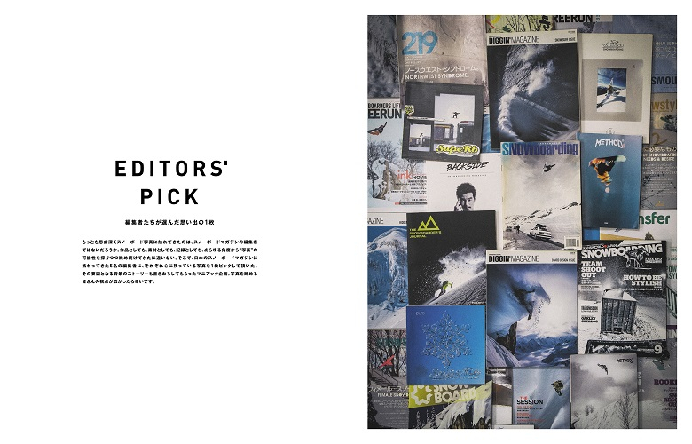 そうした裏側へ焦点を当てたり、「記録」と「作品」の境界線を探ったりなど、スノーボード写真の奥深き世界へ踏み込んだ一冊です。