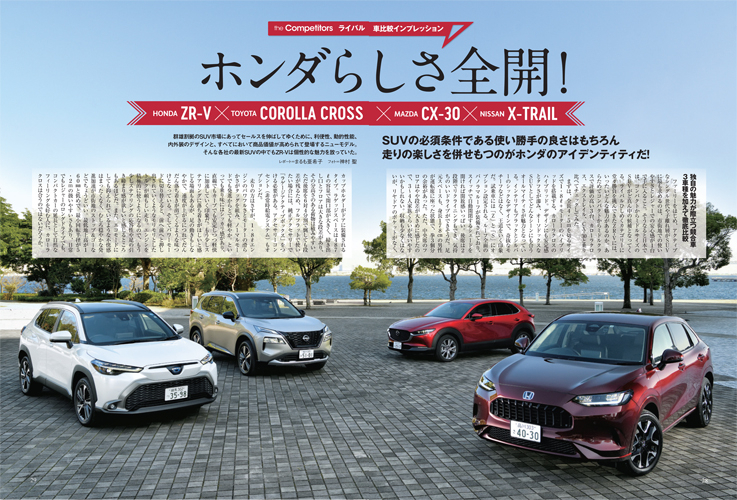 Cセグクロスオーバーという激戦区に打って出たZR-V。トヨタ・カローラクロス、日産エクストレイル、マツダCX-30という強力なライバル達とZR-Vを比較していきます。