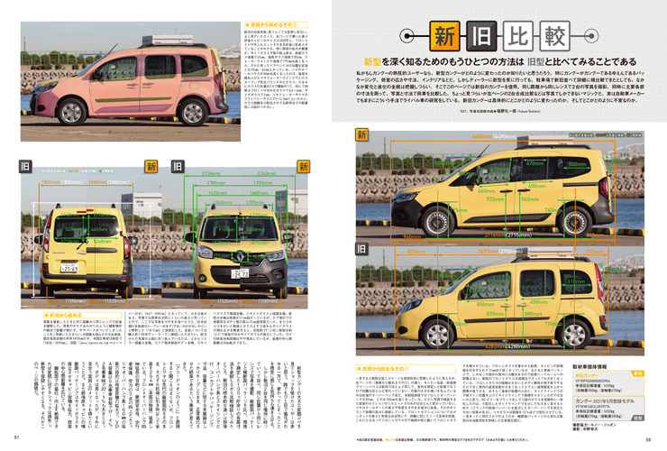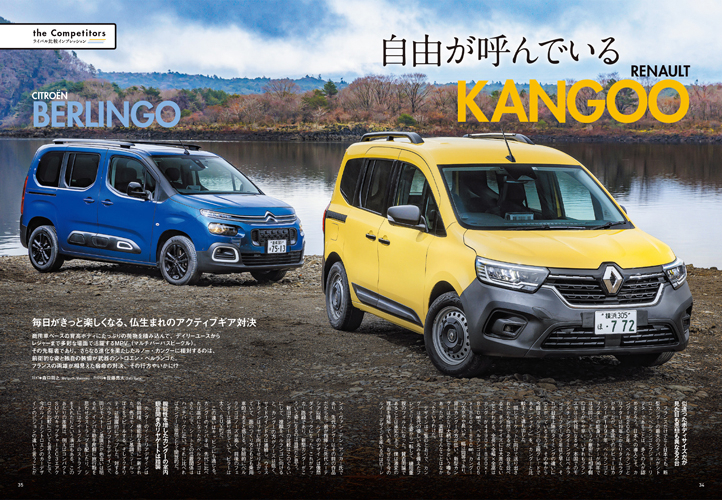 さらに、ガチンコのライバルと言えるシトロエン・ベルランゴとの比較試乗や、格段に使い勝手が向上したコクピット&ユーティリティの使い勝手チェック、どんなグレードを買うべきか一目瞭然のバイヤーズガイド、そしてオーナーならば誰もが気になる先代カングーとの徹底比較などなど、さまざまな角度から新型カングーを深掘りしています。