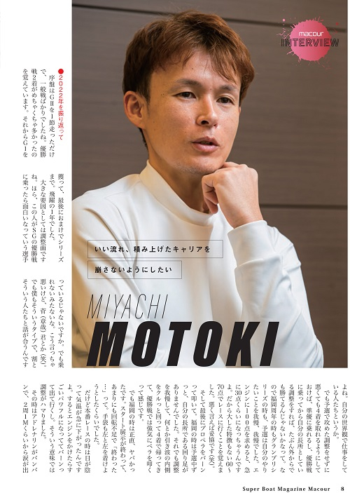 2022年は福岡周年でG・初優勝し、暮れのグランプリシリーズでSG初優勝と飛躍した宮地元輝。