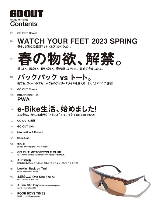 - 3/30(木)発売のGO OUT vol.163 5月号「春の物欲、解禁。」では、おしゃれアウトドア目線で選んだ、春のファッション&ギア、そして最旬スニーカーを大特集。