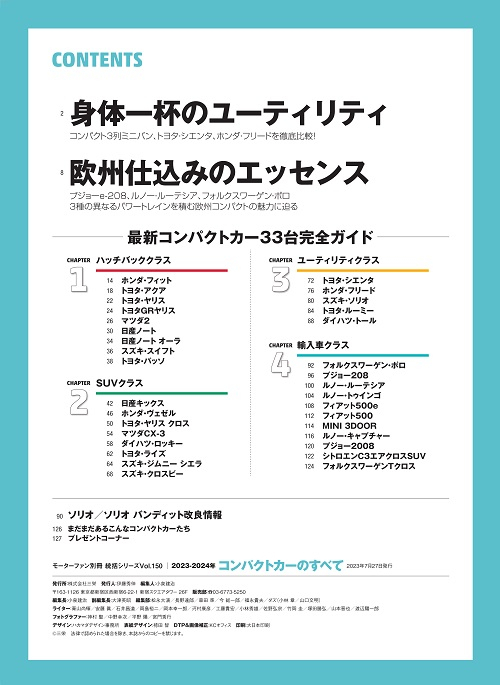 そんな「ちょうど良さ」が人気のコンパクトカーを集めたのが、「20223-2024年 コンパクトカーのすべて」です。