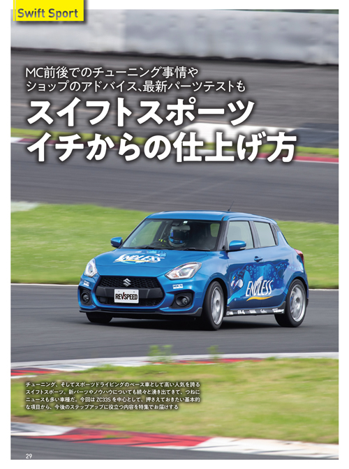 誌面特集『スイフトスポーツ』は最新チューニング情報と「これからこのクルマを楽しみたい人」のためにイチからのカスタマイズアドバイスを満載。