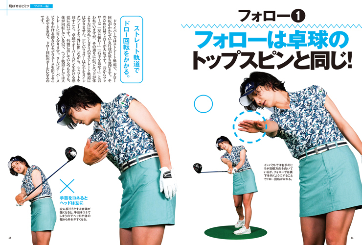 ティアップの仕方から始まり、アドレスからフィニッシュまで、スイングのパーツ別に飛ばしのポイントを紹介。