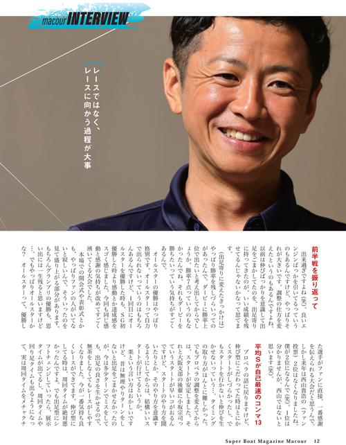 大阪の顔から、ボート界を代表する選手へと成長した石野が、現在の本音をじっくり語ってくれた。