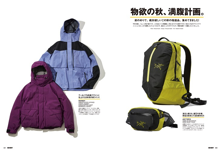 8/30(水)発売のGO OUT vol.168 10月号「物欲の秋、満腹計画。」では、満腹必至の注目ウエア&ギアをたっぷりと集めてまいりました。
