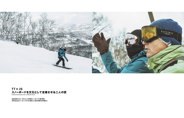 40年間もスノーボードに乗り続け、30年以上はスノーボードをつくってきた玉井太朗とジョン・ゲルント。