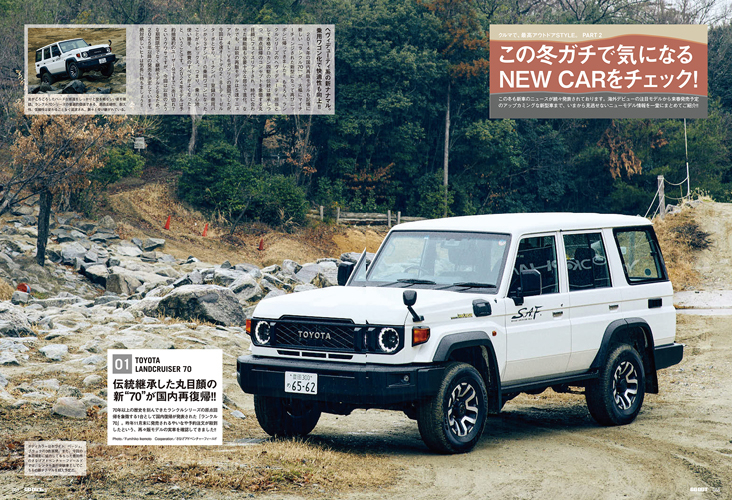 - 1/30(火)発売のGO OUT vol.173 3月号『クルマで、最高アウトドアSTYLE。』では、愛車探しに悩むアナタを強力サポート! 「達人たちの愛車拝見」、「この冬注目の新車情報」、「外遊びカスタム車」、「狙い目の中古車」と、おしゃれアウトドアなクルマをたっぷりご紹介します。
