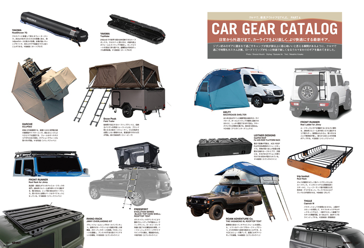 また、カーライフをより楽しく、より快適にする「おしゃれCARグッズ」のほかに、原点にして頂点な「アウトドア史に残る名作」や、日常を楽しみながら暮らす「趣味人たちのおしゃれな部屋」と、今月も内容盛りだくさんでお届けします。
