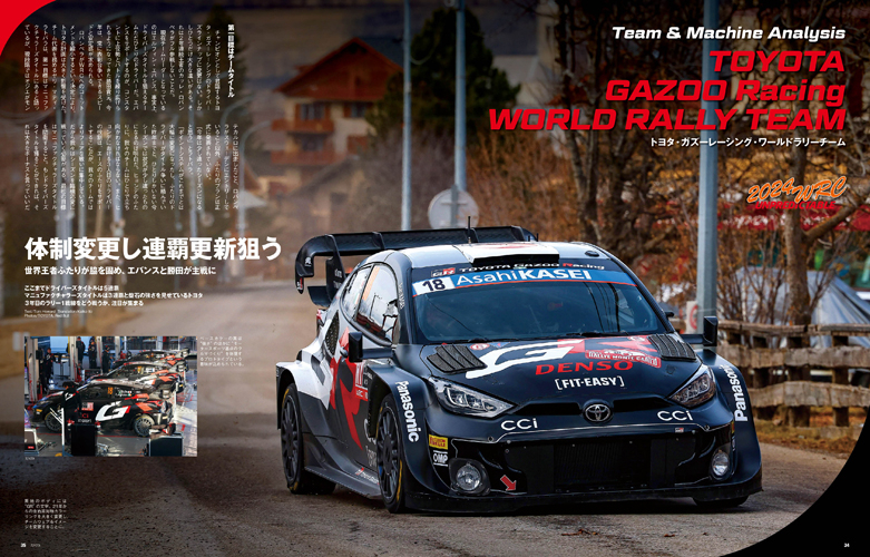 総合7位でフィニッシュした勝田貴元選手のロングインタビューや、参戦する各チームのドライバー&マシン分析、全13戦のイベントガイドなど、今シーズンのWRCを楽しむために必要な情報を網羅しました。