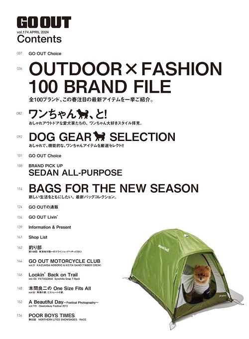 2/29(木)発売のGO OUT vol.174 4月号『OUTDOOR × FASHION 100 BRAND FILE』では、ボクらが大好きな100ブランドの、この春イチ押しの新作アイテムをたっぷりとご紹介します!