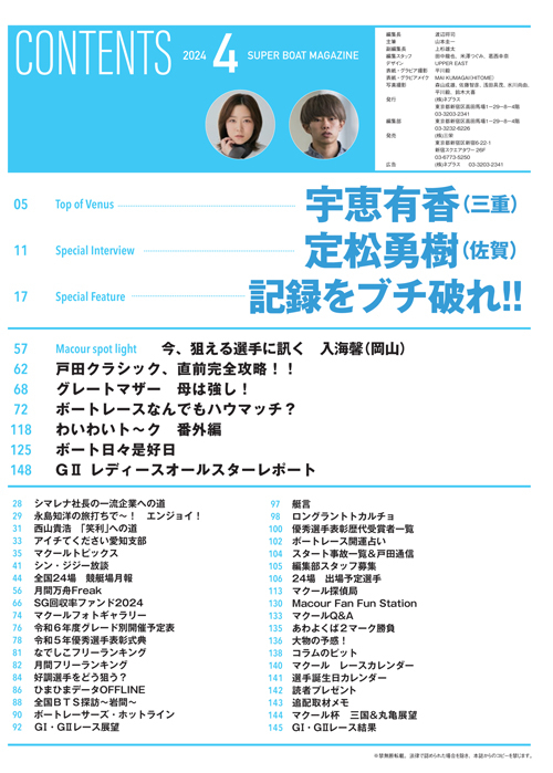 三重の新星・宇恵有香が表紙に登場。初出場のびわこレディースオールスターで初1着を挙げ、全国に名前をアピール。