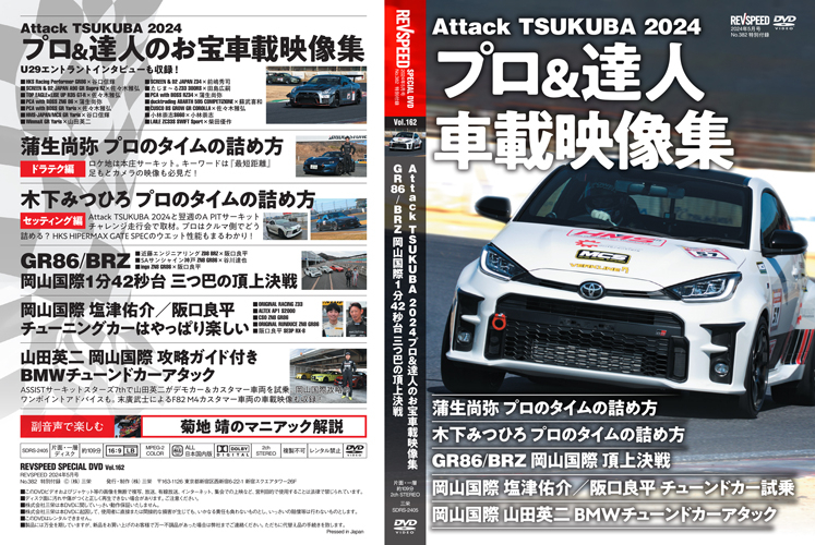 『Attack TSUKUBA 2024』は谷口信輝、佐々木雅弘、蒲生尚弥、山田英二、柴田優作、蘇武喜和、小林崇志、前嶋秀司、たじま~るの『チューンドカー・タイムアタック・オンボード映像』をお届け! U29クラス参戦の若い参加者インタビューも入っています!