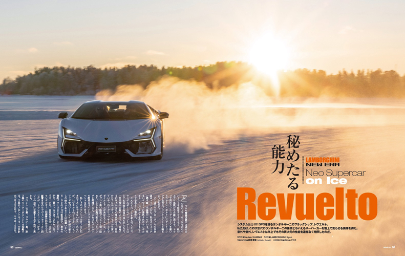 - 6月号は最新 ランボルギーニ を総力特集。異色のオフロード・スーパーカー、 ウラカン・ステラ―ト を日本で試す! 最後のV10、 ウラカンSTJ 詳報! さらに レヴエルト で氷上アタック! 新型 ウルス にハイブリッドが出た! ほか、全30ページでお届けします。