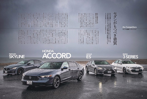 レクサスES、日産スカイライン、BMW 3シリーズとの比較を通じてアコードのポテンシャルを測ります。