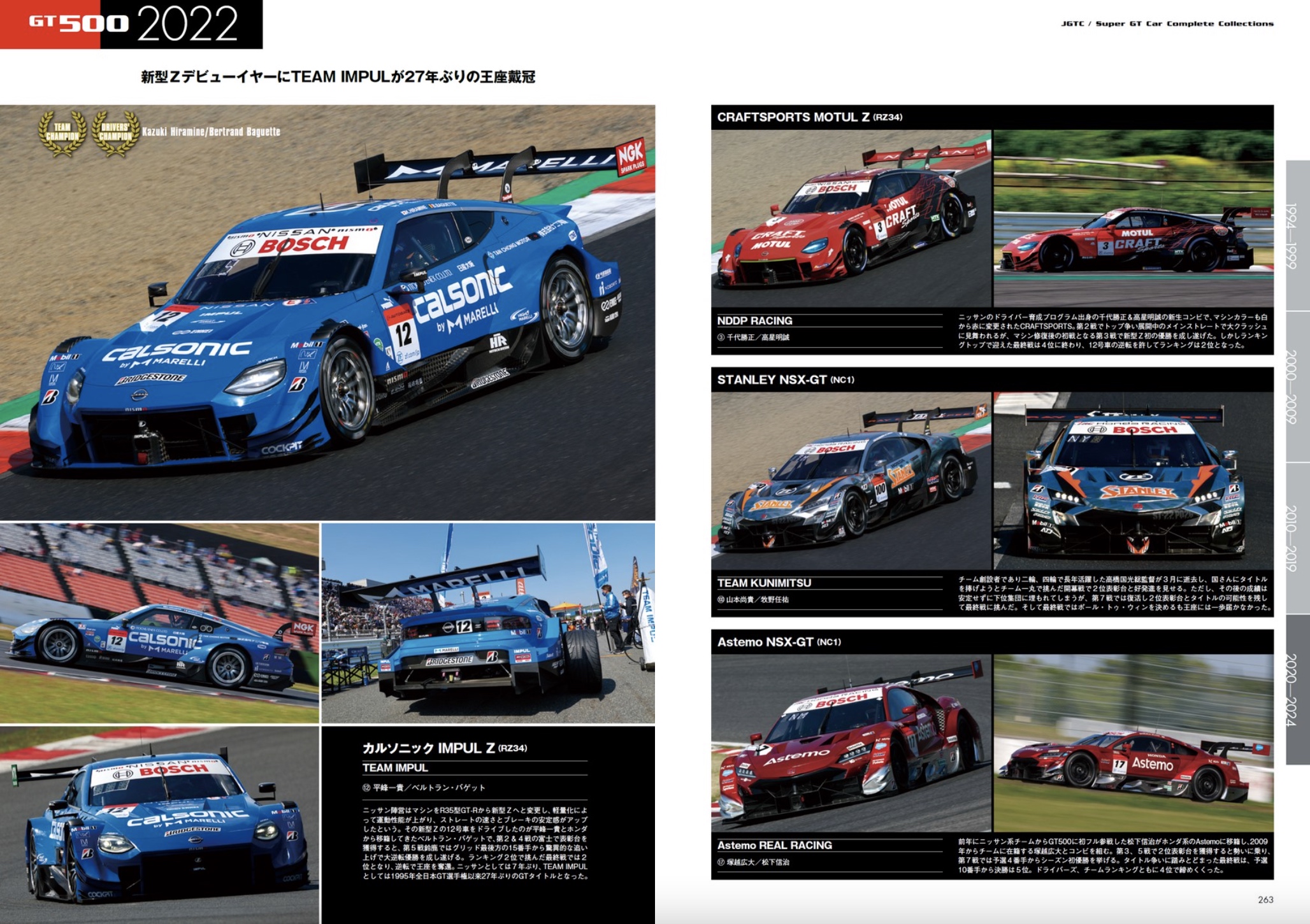 2024年、前身のJGTC(全日本GT選手権)発足から「30周年」を迎えたSUPER GT。その節目を祝いつつ長い歴史を体現し、ファンにアピールできるものとして制作した、資料性も高い記念ムックです。1994年から最新の2024年まで、31シーズンを走った「すべての」GT出走マシンが完全収録されており、その数トータル1400台以上というボリューム。各車にはキャプションも付けられ、いつでも歴史の長さと足跡、戦績、カラーリングを見返すことができます。長くSUPER GTを応援しているレースファンはもちろん、当時を知らぬ若いファンにも最適な一冊です。