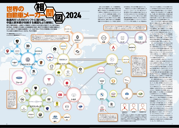 世界の自動車メーカーの関係性を一目瞭然にまとめました。自動車大改革の流れの中、どうやってこの激流を生き抜いていくのか、各企業の思惑が交錯します。