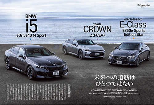 BMW 5シリーズの宿命のライバルであるメルセデス・ベンツEクラス。そして日本を代表するラグジュアリーセダン、トヨタ・クラウン。BEV、PHEV(プラグインハイブリッド車)、FCEV(燃料電池車)と、パワートレインも千差万別なライバル同士を比較します。