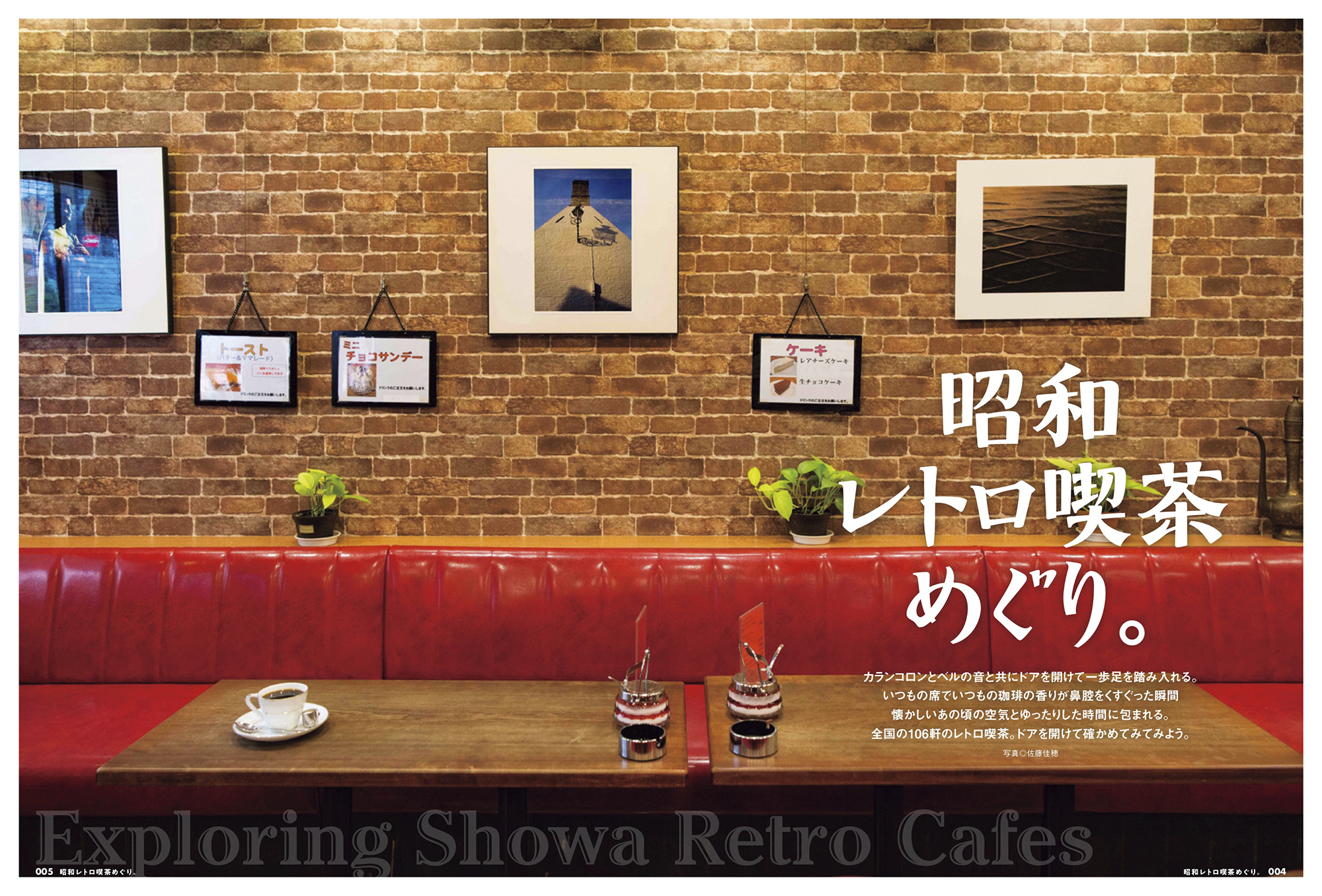 カランコロンとヘ゛ルの音と共にト゛アを開けて一歩足を踏み入れる。 いつもの席て゛いつもの珈琲の香りか゛鼻腔をくすく゛った瞬間、懐かしいあの頃の空気とゆったりした時間に包まれる。全国の106軒のレトロ喫茶。ト゛アを開けて確かめてみてみよう。