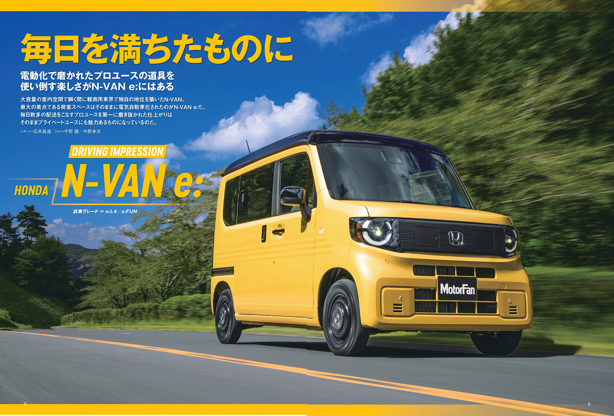 運転席以外をすべて格納して生まれる広大な収納スペースと、助手席ピラーレスの大開口部の組み合わせで、あっという間に軽商用車ユーザーに受け入れられたホンダN-VAN。プロユースのみならず、ホビーユースにも人気を集めています。そんなN-VANを、電気自動車化したのがN-VAN e:。床下にバッテリーを搭載することで余裕の室内空間はそのまま。ゆとりあるモーターパワーのおかげで荷物を満載しても力強く加速していきます。気になる航続距離は軽電気自動No.1の245kmを記録。配送にも遊びにも使いでのありそうなN-VAN e:のすべてをお届けします。