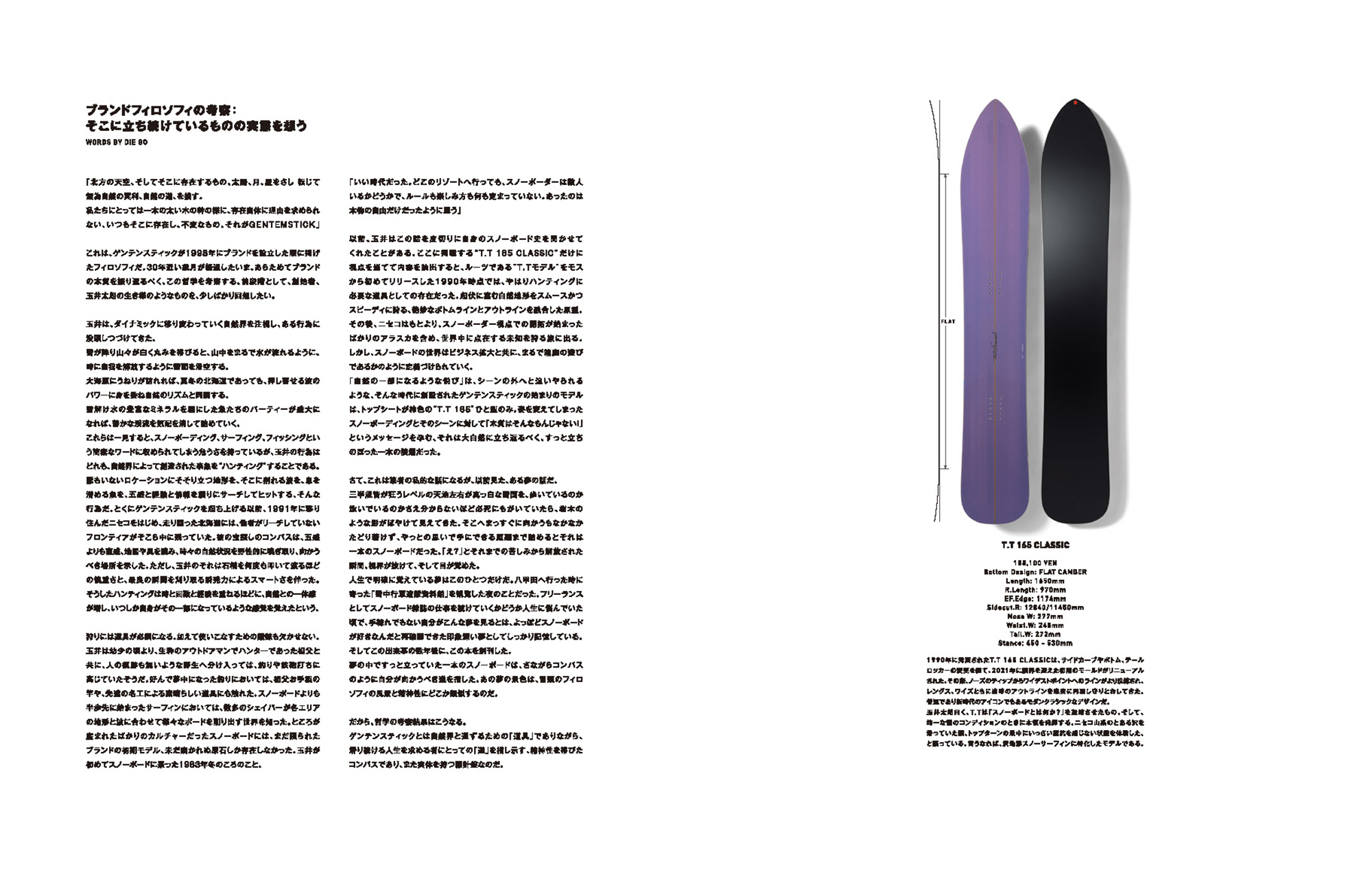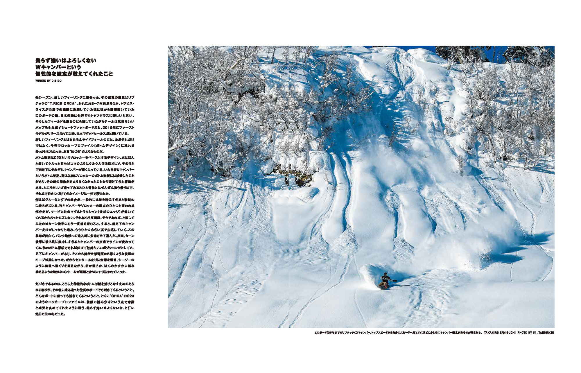 今号はブランドブックと題し、スノーボードギアやプロダクトの紹介はもちろんのこと、何よりも、そのブランドの個性を改めて知ってもらう、より理解を深めてもらうための特集です。 19のスノーボードブランド、ウエアやその他のギアを扱う27のブランド。計46ブランドの背景を届けるストーリー構成は、212ページに及ぶ読み応え満載の内容。スノーボードギアを選ぶ際の重要な視点となるはずです。